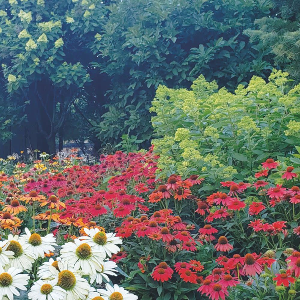 'Frankly Scarlet' Coneflower is a stunning variety that dazzles with its 4-inch, bright scarlet-orange flowers, offering a vibrant burst of color in your garden. The large, fragrant blooms are beautifully set against a backdrop of dark green foliage, creating a striking contrast. Known for its excellent branching, this coneflower maintains a full, bushy appearance throughout the growing season. As the flowers age, their bold red hue softens to coral-orange. A true pollinator magnet, it attracts bees and butterflies, while its seed heads, which linger into late fall and winter, provide a valuable food source for birds. 'Frankly Scarlet' is an excellent choice for adding color, wildlife support, and beauty to your landscape year-round.