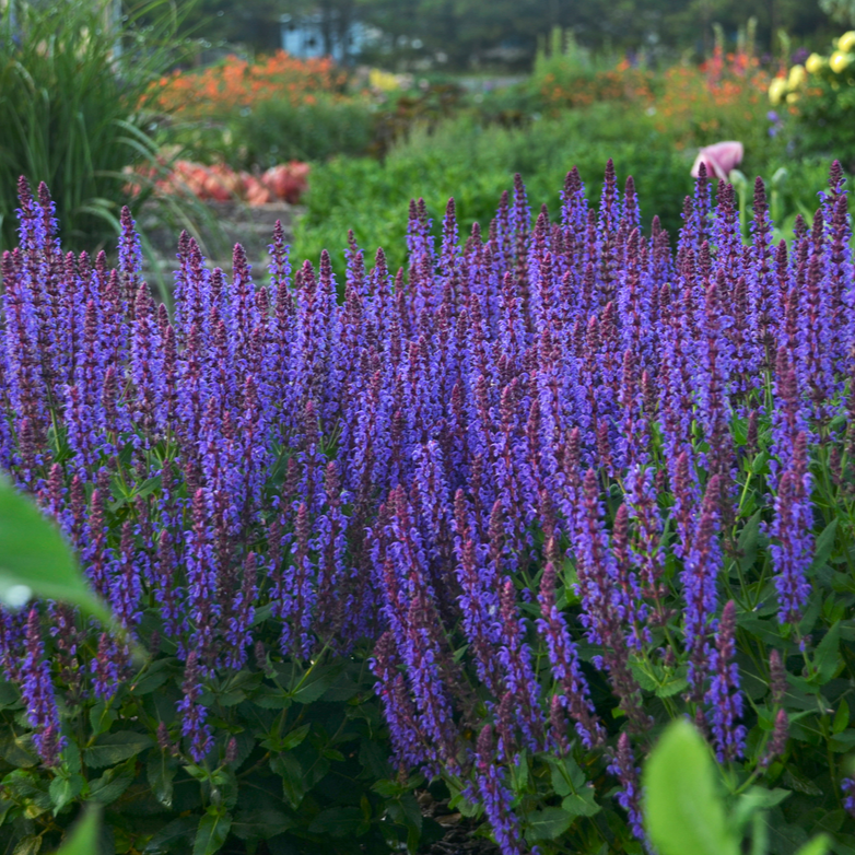 Violet Riot produces vivid violet blue flower spikes atop neatly mounded, aromatic foliage. Lovely when planted in drifts. This fragrant perennial is salt tolerant, attracts pollinators, and resists deer and rabbits.