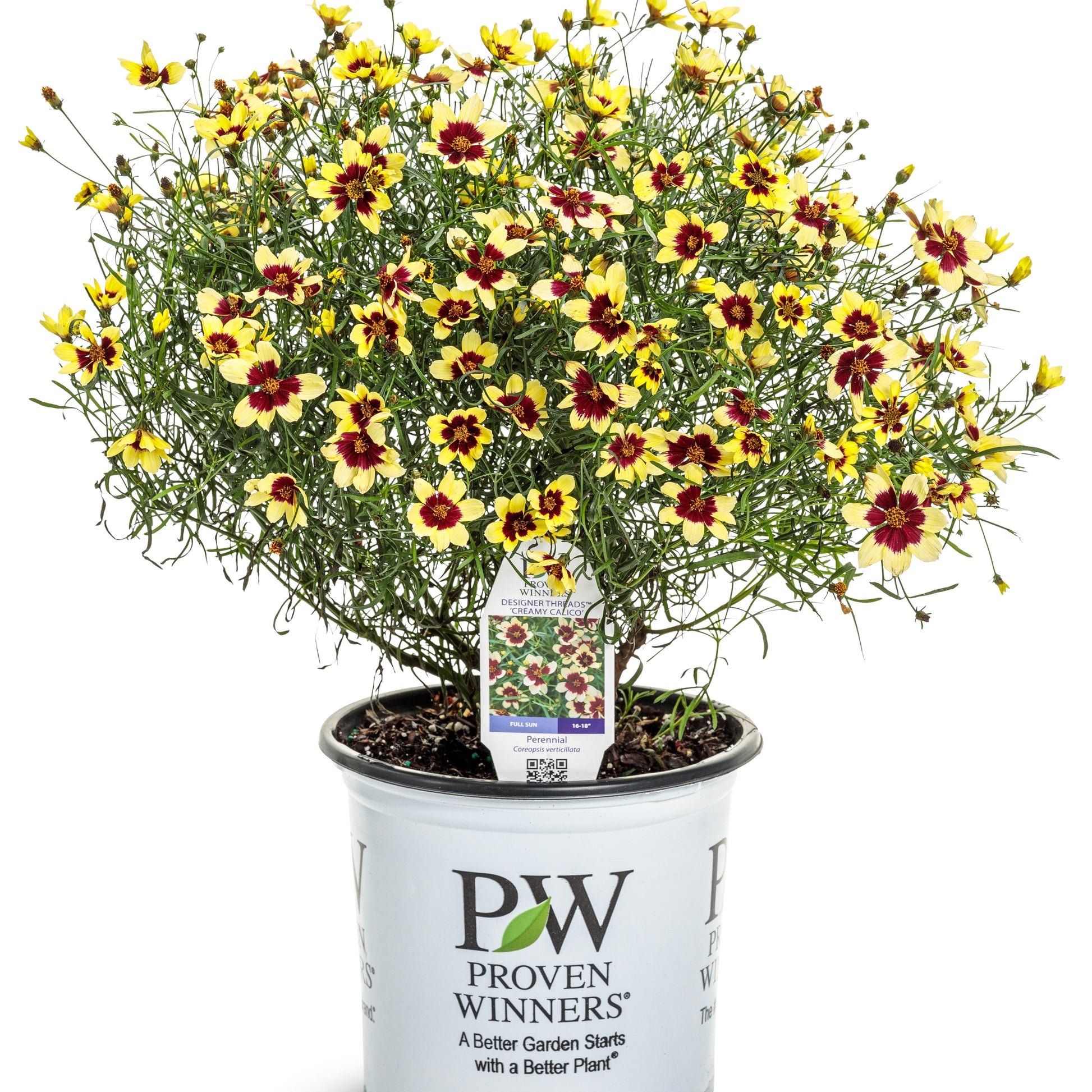 Say hello to the 'Creamy Calico' Coreopsis – the flower that’s as charming as it sounds! Picture this: soft, buttery yellow petals with a bold, deep maroon center that creates the perfect contrast. It’s like nature’s own little masterpiece! Whether you're a garden guru or a green-thumbed newbie, this plant is a dream come true. Easy to grow and incredibly rewarding, Creamy Calico brings you cheerful blooms all summer long. Plus, it’s a bouquet-making machine – one plant is all you need to keep your home full of fresh, long-lasting floral arrangements. Go ahead, treat your garden to a touch of sunshine and elegance!