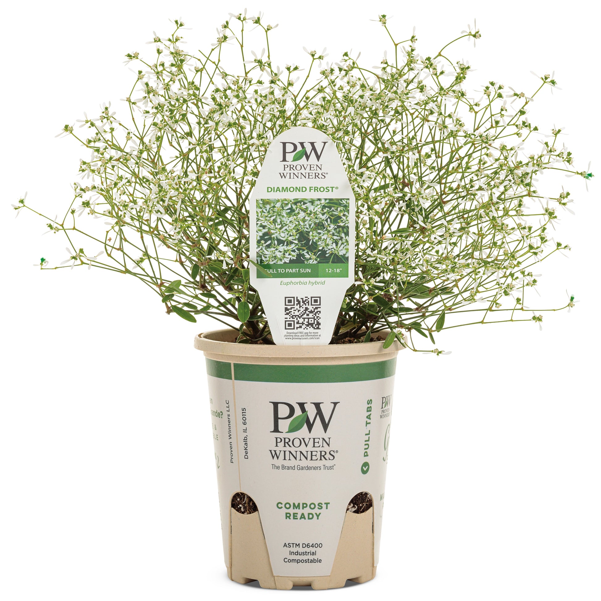 Diamond Frost® is a tough, versatile plant that brings a touch of delicate elegance to any garden. With its airy, cloud-like white flowers that bloom continuously throughout the season, it creates a stunning display in both containers and landscapes. This resilient beauty is deer resistant, heat-tolerant, and drought-tolerant, making it a perfect choice for low-maintenance gardens in challenging climates. Whether used as a border, in hanging baskets, or as a filler in mixed containers, Diamond Frost® offers a bright, long-lasting flourish with minimal care, making it an essential addition to any garden.