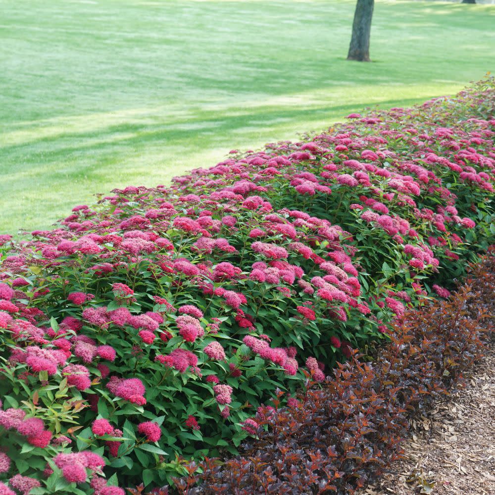 Double Play Doozie® has foliage that emerges in blazing, deep red and lime green in early spring before it matures to dark green through the season. Late spring brings bright, glowing red-pink flowers, and it blooms all summer. It is non-invasive, meaning it sets no seed and won't spread. All the energy it would spend developing seed goes into blooming instead, so it reblooms through fall. It does it all with the same good looks, drought tolerance, and deer resistance that you expect from spirea, too.