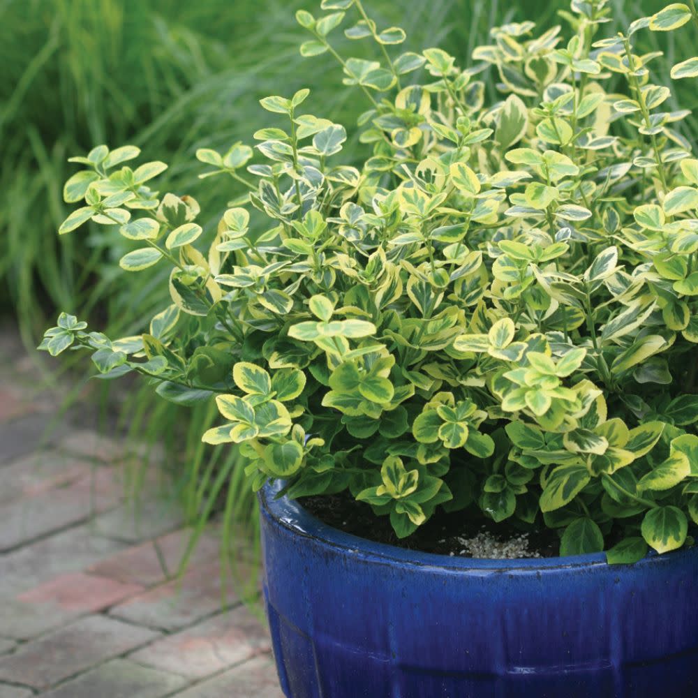 Gold Splash® Wintercreeper is a stunning evergreen groundcover that dazzles with its big, round leaves of soft green and vibrant yellow. This hardy plant maintains its cheerful variegated foliage throughout the year, adding a splash of color to any landscape in every season. Perfect for containers, garden beds, mass plantings, or borders, it thrives in a variety of settings. Its compact growth makes it an excellent choice for tight spaces, such as along sidewalks, where it can create a beautiful, low-maintenance display.