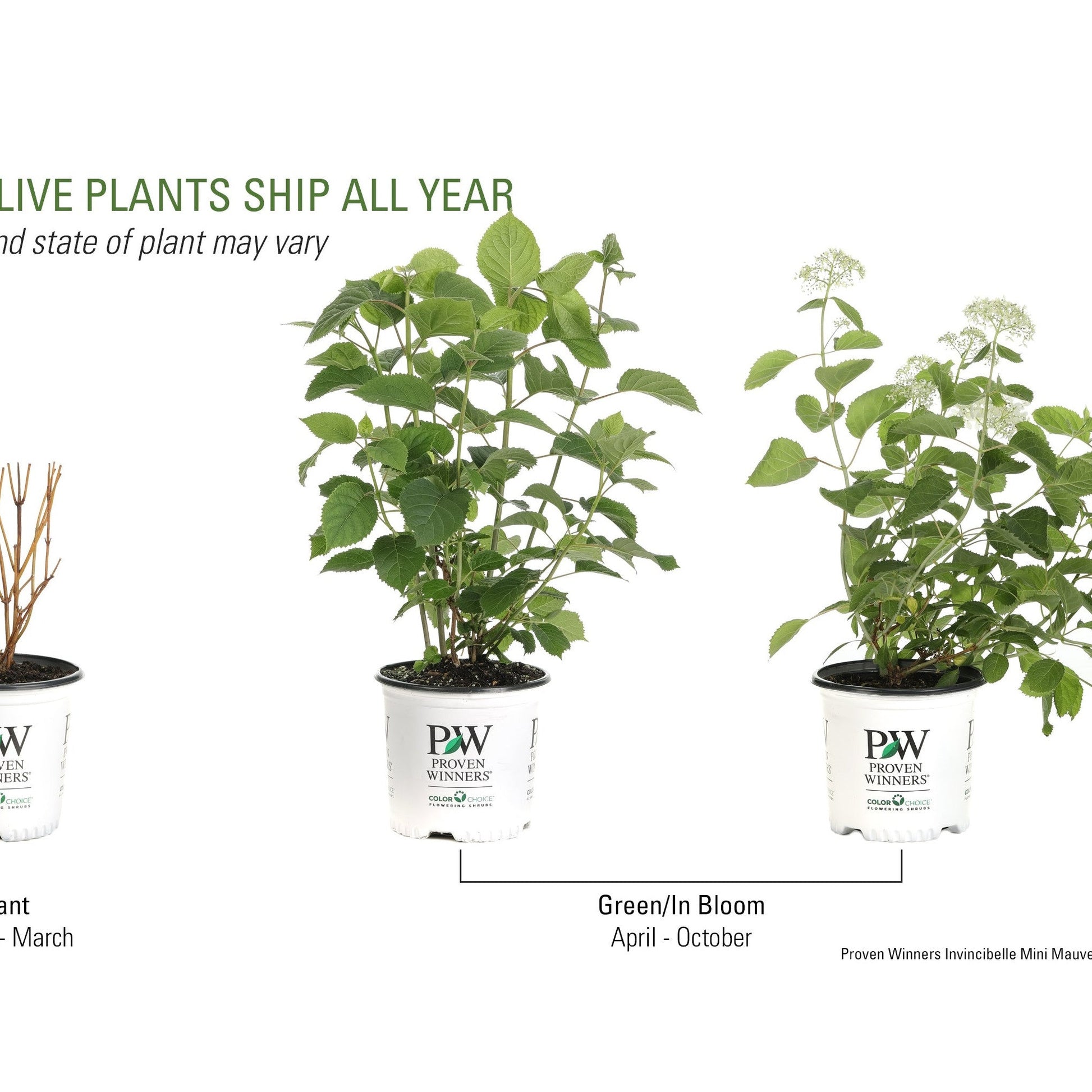- Shrubs shipped Nov-Apr will arrive dormant; shrubs shipped Apr-Oct will arrive green or in bloom