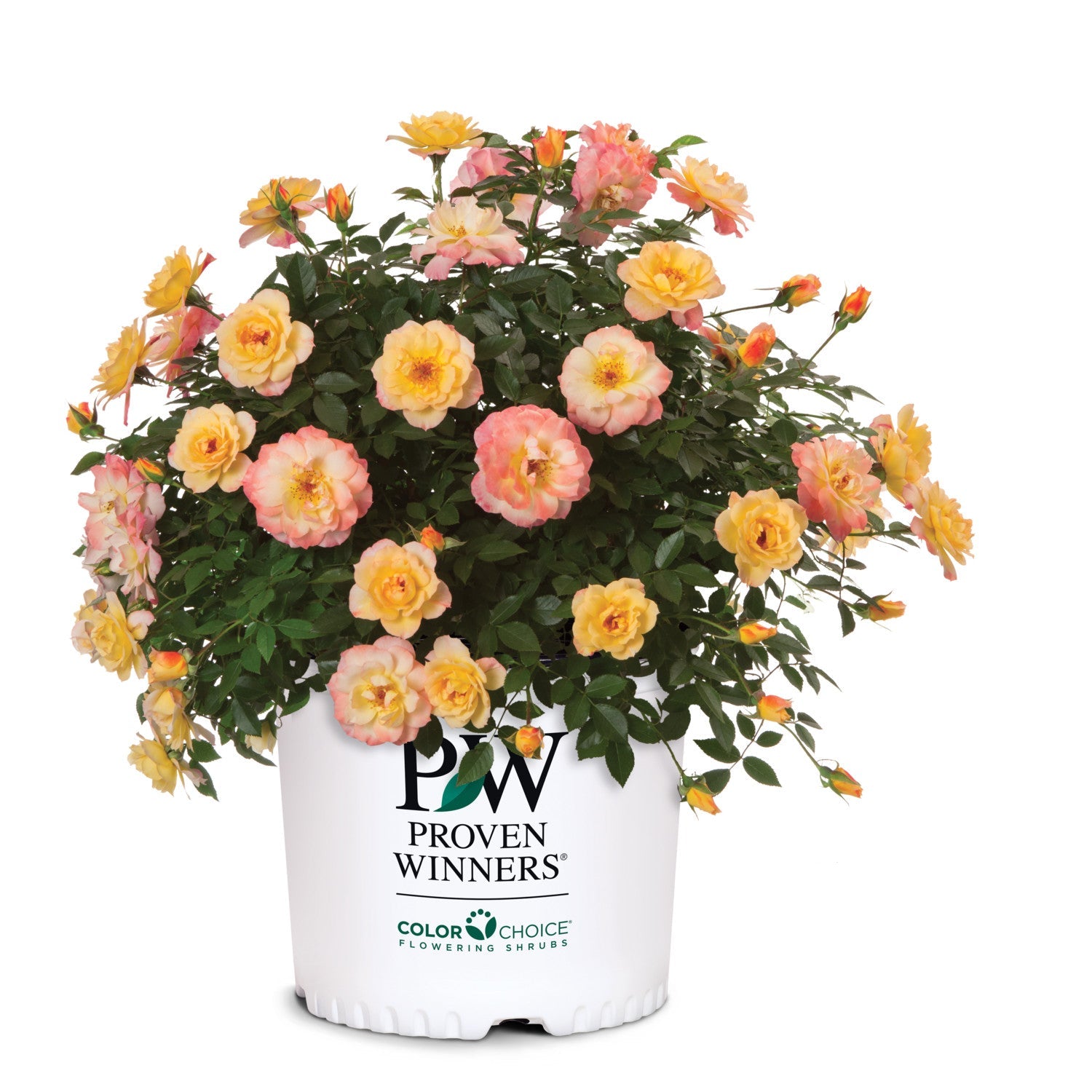 Oso Easy® Italian Ice is a delightful rose that starts with zesty orange buds, which open to reveal soft yellow flowers with a playful pink blush on the edges all summer long. Its cheerful blooms pop against the backdrop of dark green, glossy foliage, creating a vibrant contrast. This self-cleaning beauty is as carefree as it is stunning, with excellent disease resistance and abundant double flowers that keep the color coming. With its charming habit and low-maintenance nature, Oso Easy® Italian Ice is the perfect way to add a touch of fun and flair to your garden!