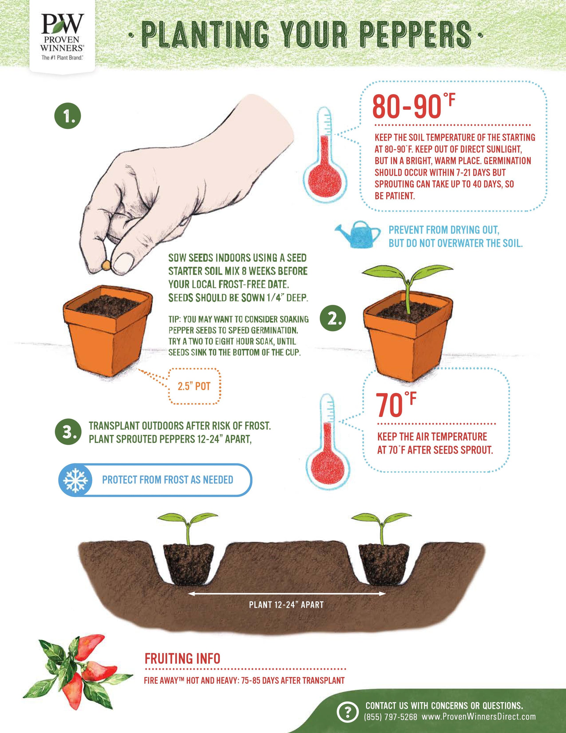 Starting Seeds: Sow seeds indoors 1/4" deep 8 weeks before your local frost-free date. Transplant outdoors after risk of frost 12-24" apart. You can expect fruit within 75-85 days after transplant.
