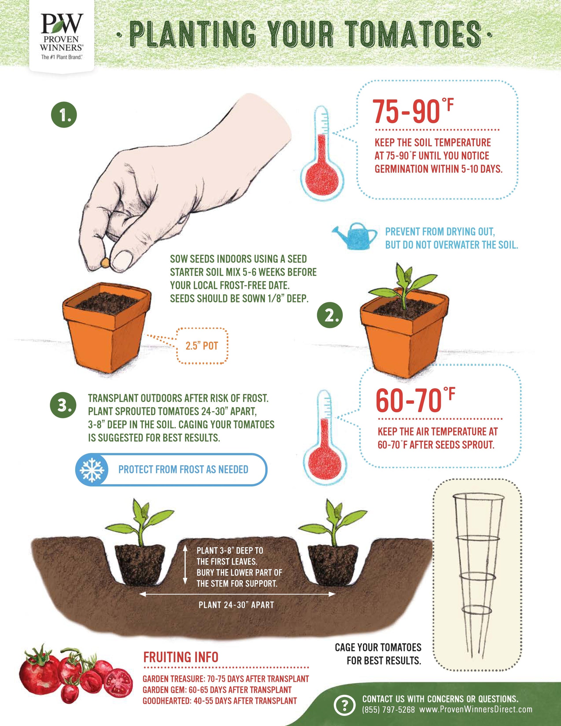 Seed Starting: Sow seeds indoors 1/8" deep 5-6 weeks before your local frost-free date. Transplant outdoor after threat of frost 24-30" apart at 3-8" deep. Bury the lower part of the stem for support and cage them for best results. You can expect fruit within 70-75 days.