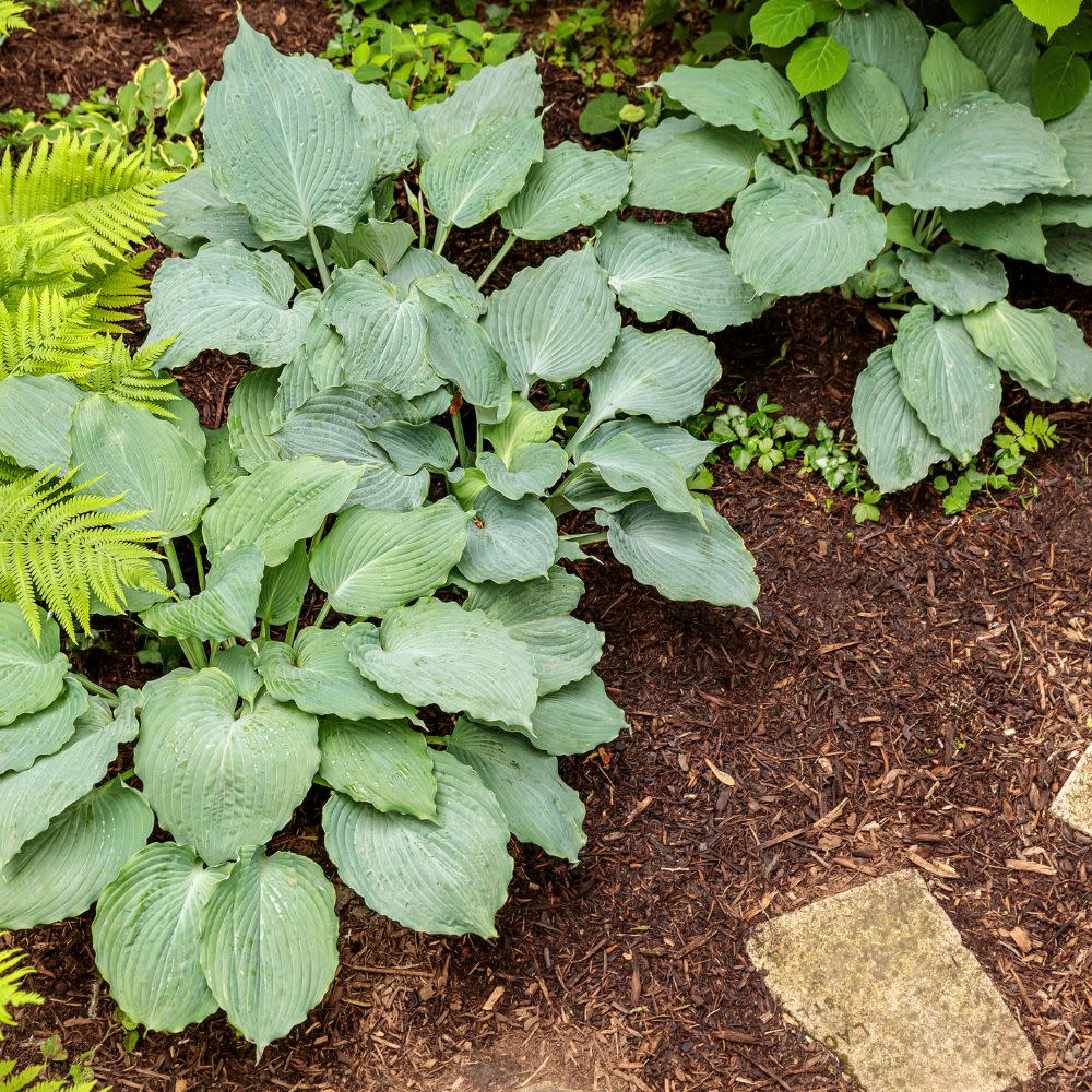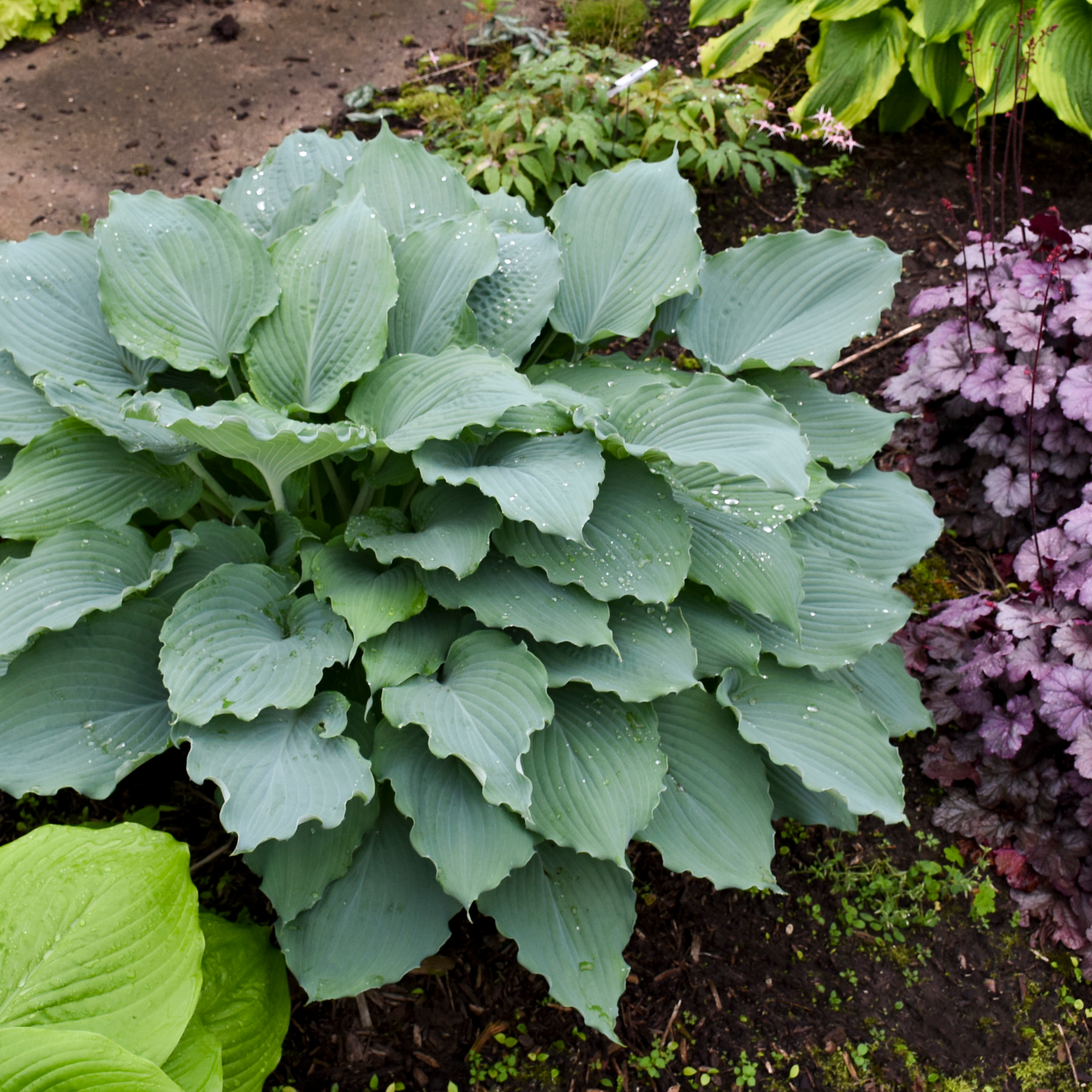 Shadowland® 'Diamond Lake' Hosta is a stunning addition to any garden, forming a striking mound of heart-shaped, thick, and heavily corrugated blue leaves with elegant wavy margins. Its unique foliage creates a bold contrast in shaded areas, offering both texture and visual interest. In mid-summer, delicate pale lavender-purple flowers emerge, adding a soft pop of color to the landscape. These blooms are not only beautiful but also attract hummingbirds, enhancing your garden with both charm and wildlife appeal. Perfect for adding a touch of sophistication and natural beauty, 'Diamond Lake' is a must-have for hosta enthusiasts and gardeners seeking a low-maintenance, yet high-impact perennial.