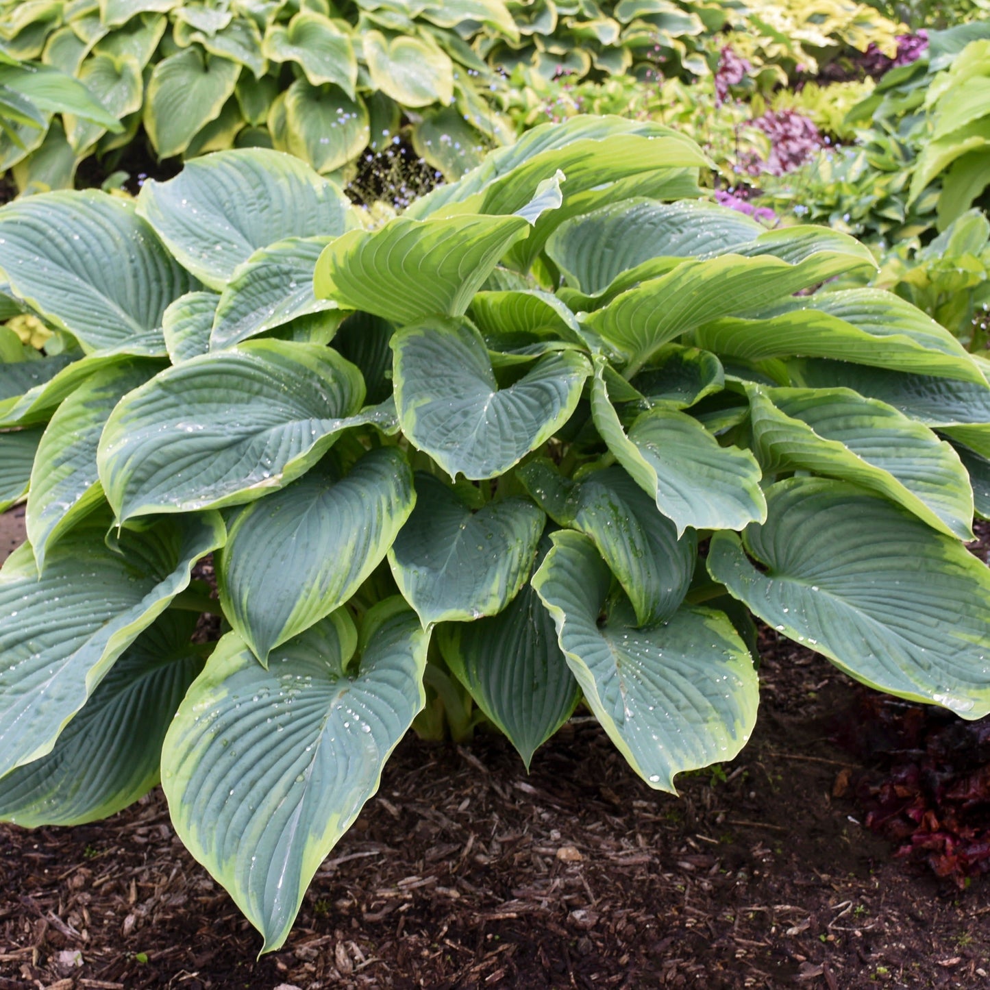 - Maintains blue-green foliage with apple-green margins from spring to frost