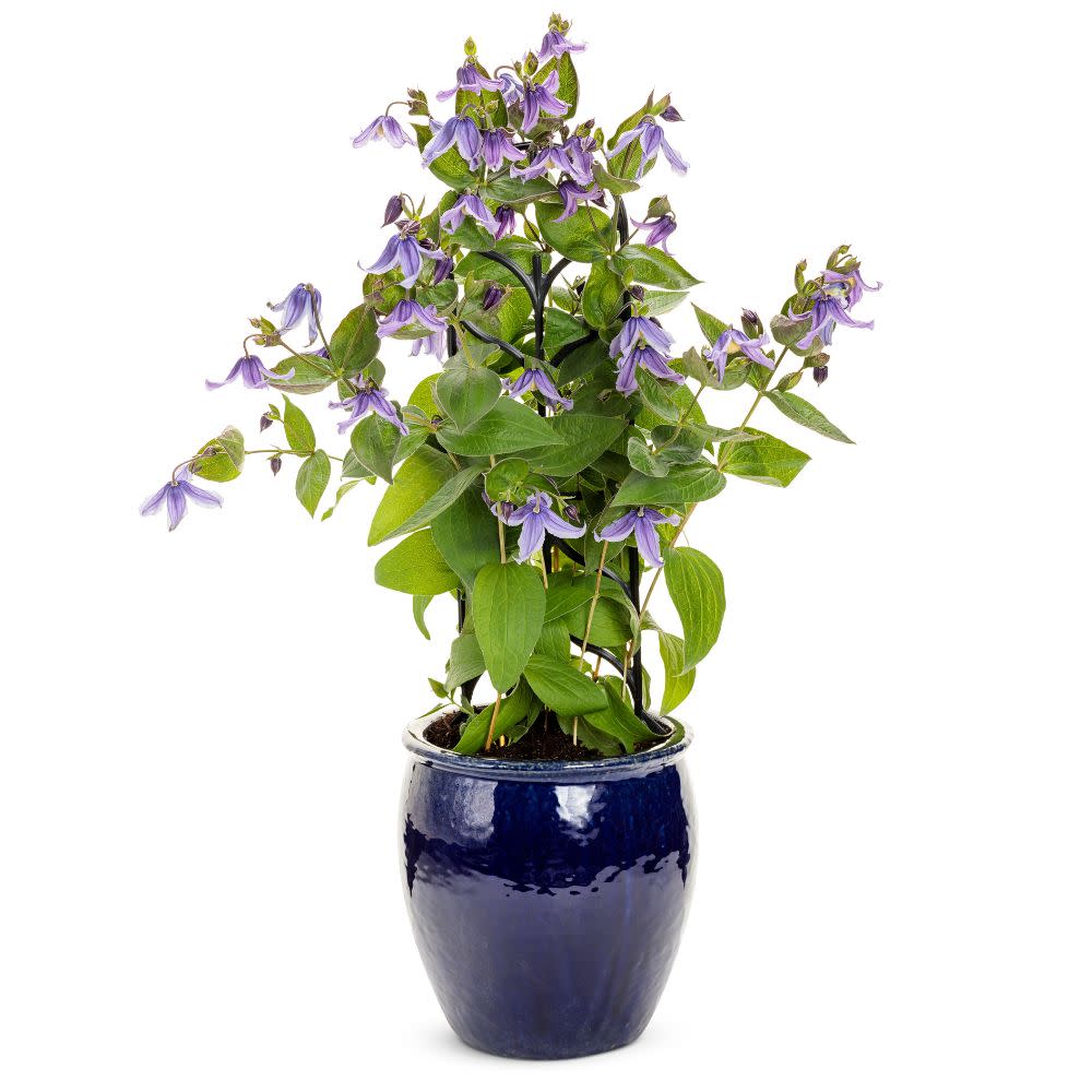 Add a touch of elegance to your garden with 'Stand by Me Lavender' Bush Clematis! This stunning variety starts with dark purple buds that open into graceful, lavender-purple, bell-shaped flowers that nod delicately in the breeze. As the blooms fade, attractive cream-colored, thread-like seed heads follow, adding even more visual interest. The broad, green foliage provides a lush backdrop for the beautiful flowers. Ideal for staking, cages, or leaning on neighboring plants for support, this reblooming beauty is a magnet for pollinators while resisting deer and rabbits. Perfect for adding color and charm to any garden!