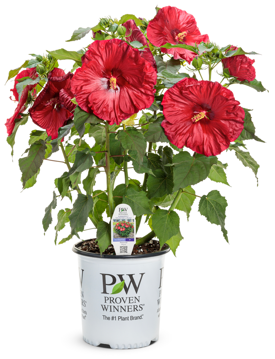 Summerific® 'Valentine's Crush' showcases 7" bright red flowers and leaves that have a large, ovate shape and a dark bronze cast in full sun. This beauty has an upright, columnar habit that is very sturdy and resists lodging. It attracts hummingbirds, is native to North America and resists deer. It is grown in a new two gallon container, providing instant impact!