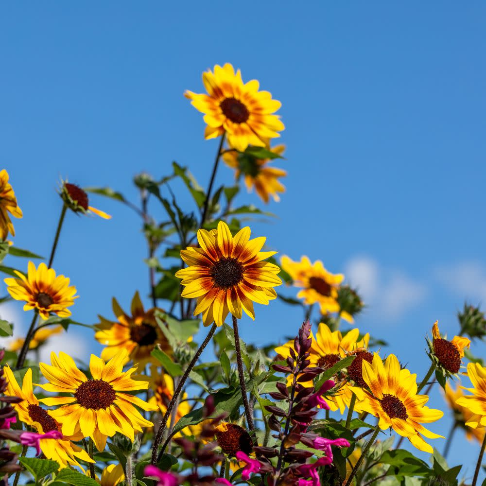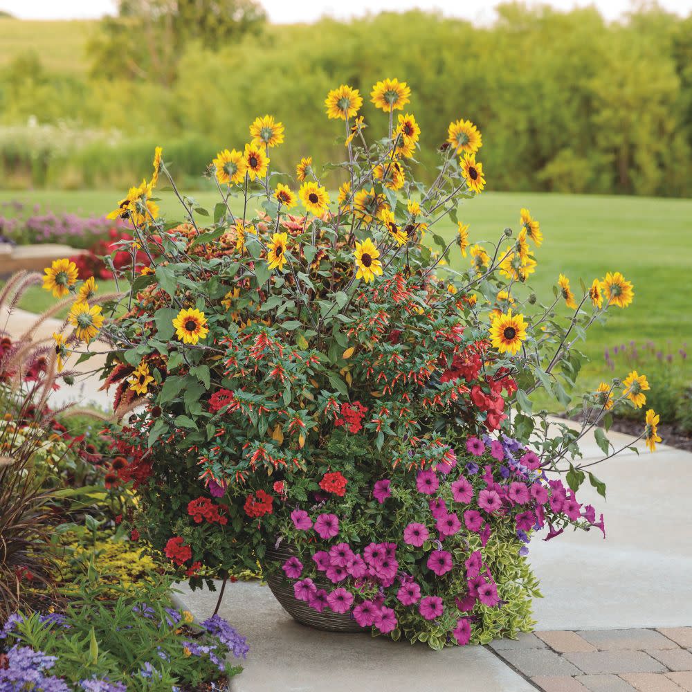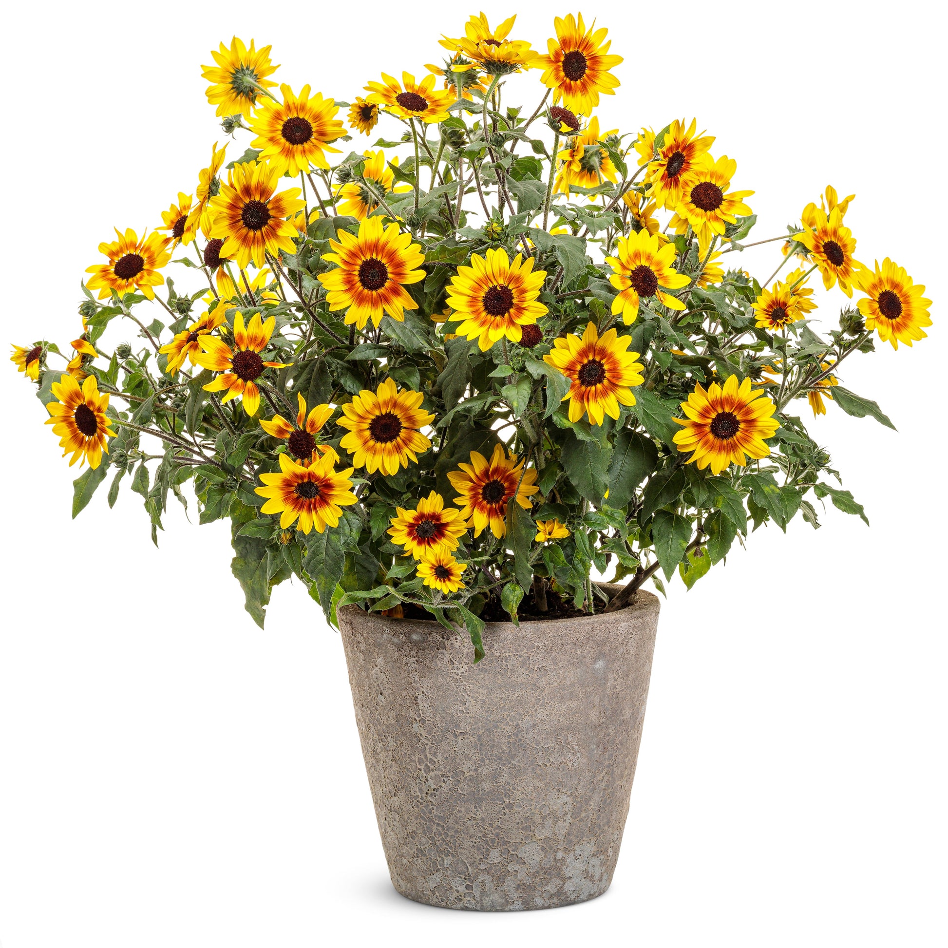 Need a little more summer color packed into your garden? Suncredible® Saturn™ has massive, bright yellow blooms with an orange ring and brown center. It is built on a well-branched bush-like habit that is perfect for the back of the bed as an annual screen or along a fence. The blooms are about 4” across and do not need to be deadheaded to continue blooming, but they can be groomed for tidiness.