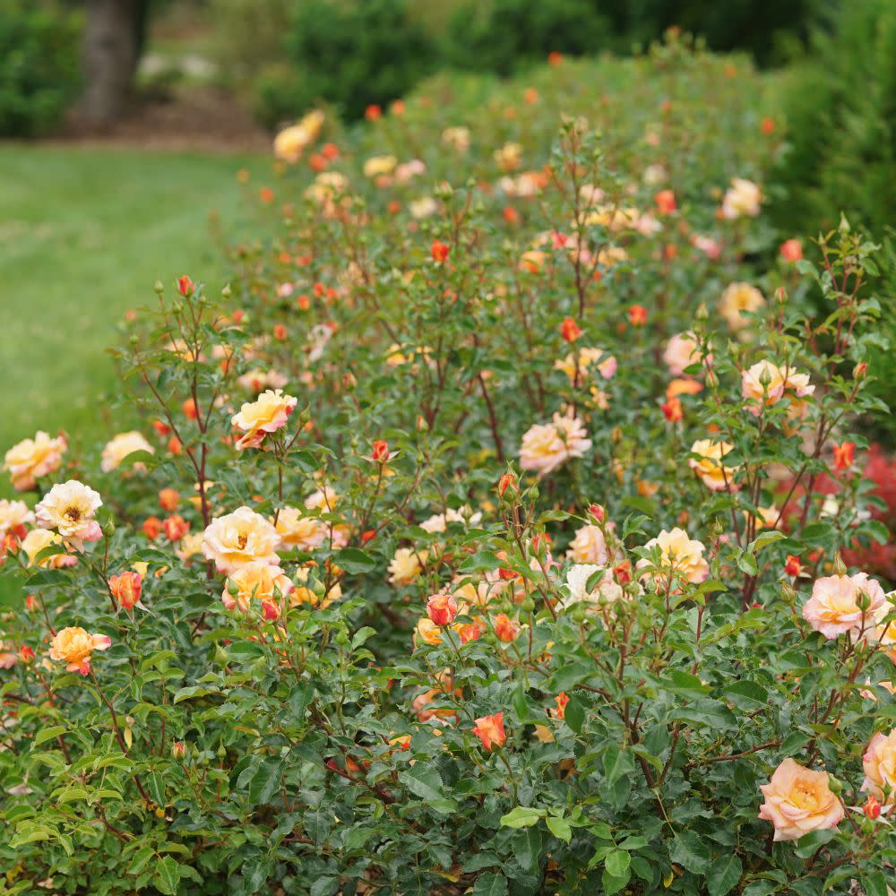 Suñorita® displays elegant, classically shaped buds that are red-orange and open to reveal a soft orange bloom made up of several dozen petals, perfectly shaped to form a classic rose "bowl." As the blooms age, they develop a golden tone blooming summer through fall. Deep green foliage covers the sturdy, medium-sized plant and easily resists common rose diseases like black spot or powdery mildew.