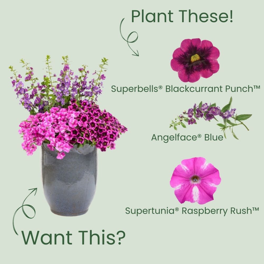 Elevate your garden with the vibrant Superbells Blackcurrant Punch! This stunning variety showcases a captivating deep black eye surrounded by bright pink-purple edges, creating a striking contrast that will turn heads. With an abundance of small, petunia-like flowers, these beauties bloom from planting until the first frost, providing non-stop color throughout the season. Heat tolerant and low-maintenance, Superbells Blackcurrant Punch thrives in warm weather without the need for deadheading. Plus, its alluring blooms attract hummingbirds, adding life and movement to your garden. Perfect for containers or garden beds, this exceptional plant will bring a delightful pop of color and charm to any outdoor space!