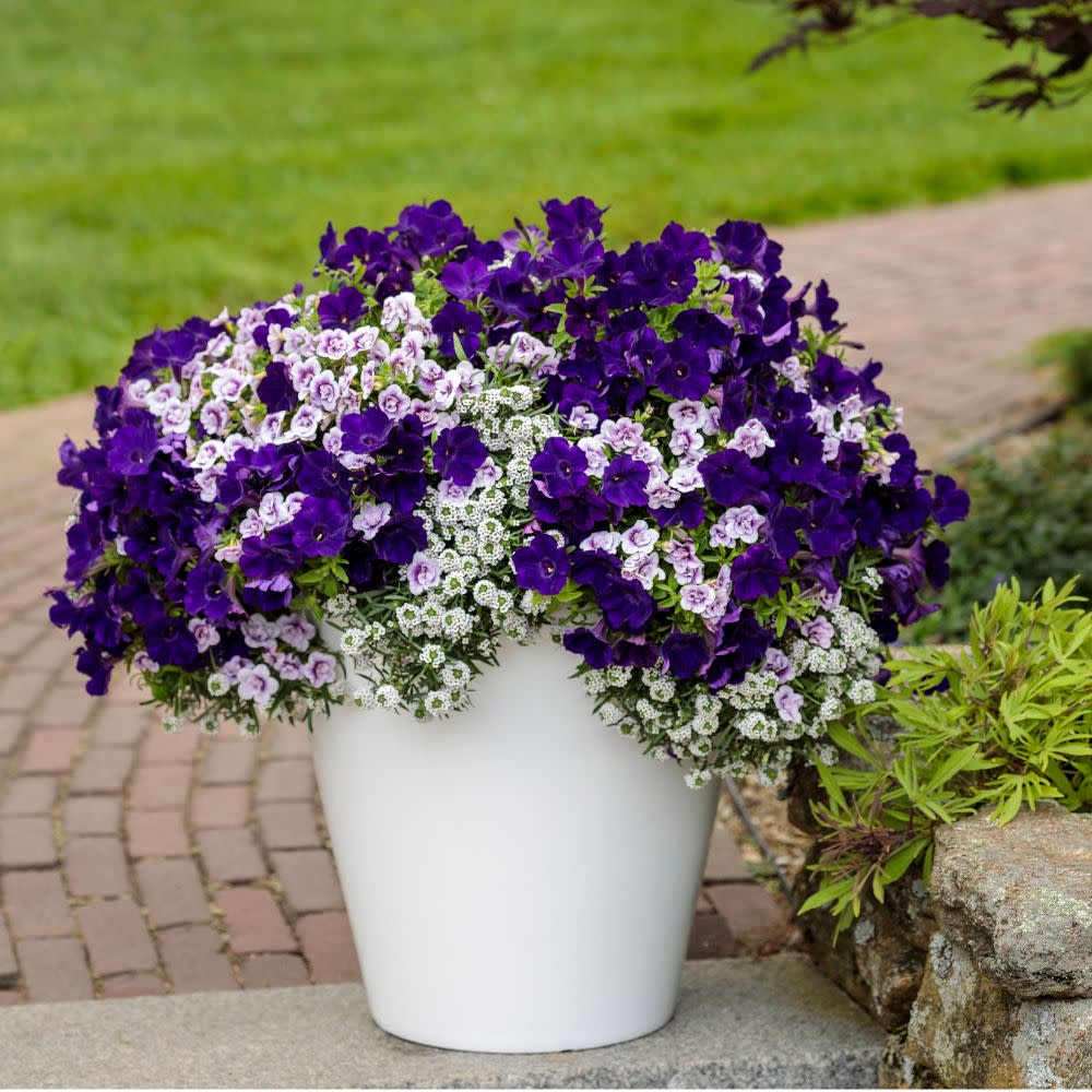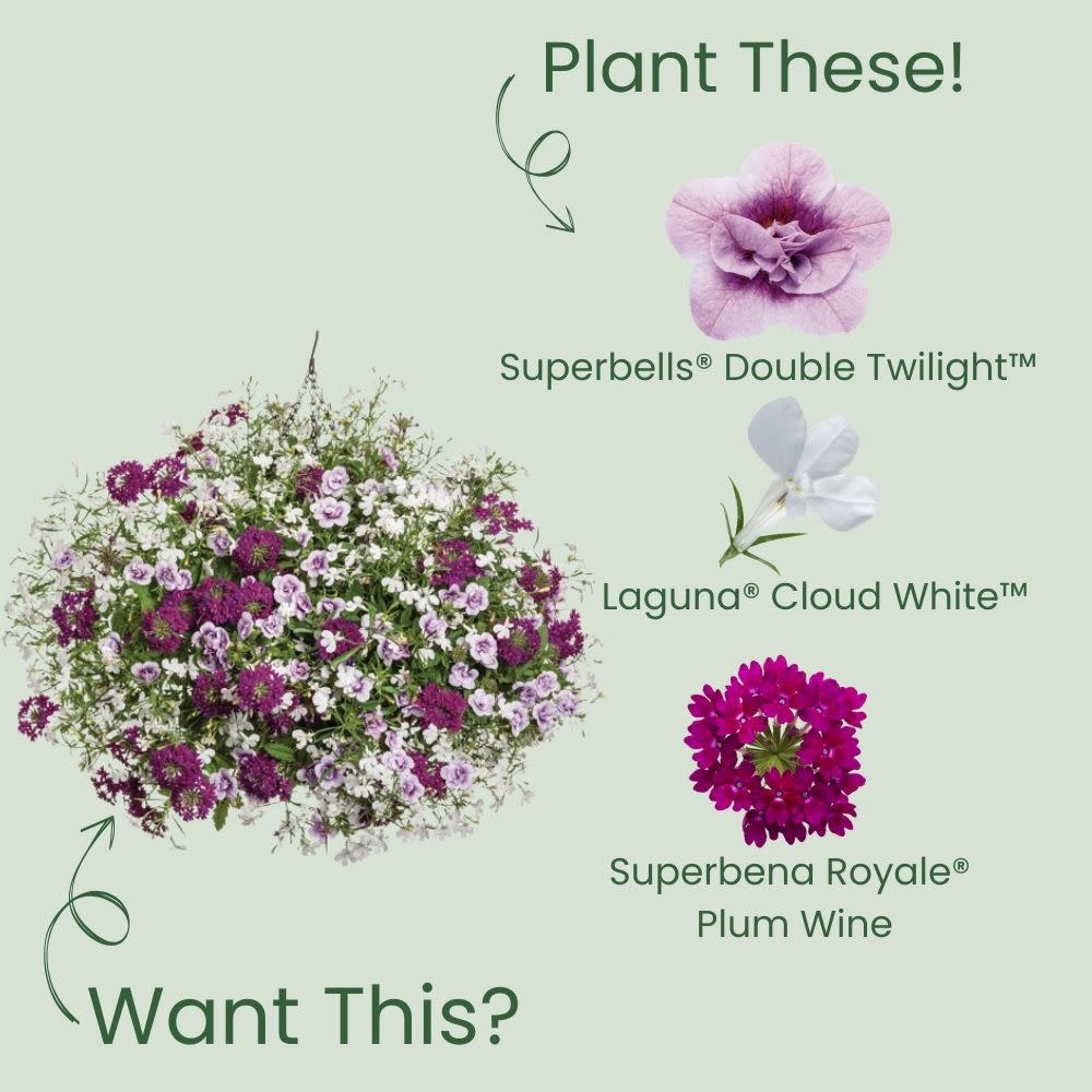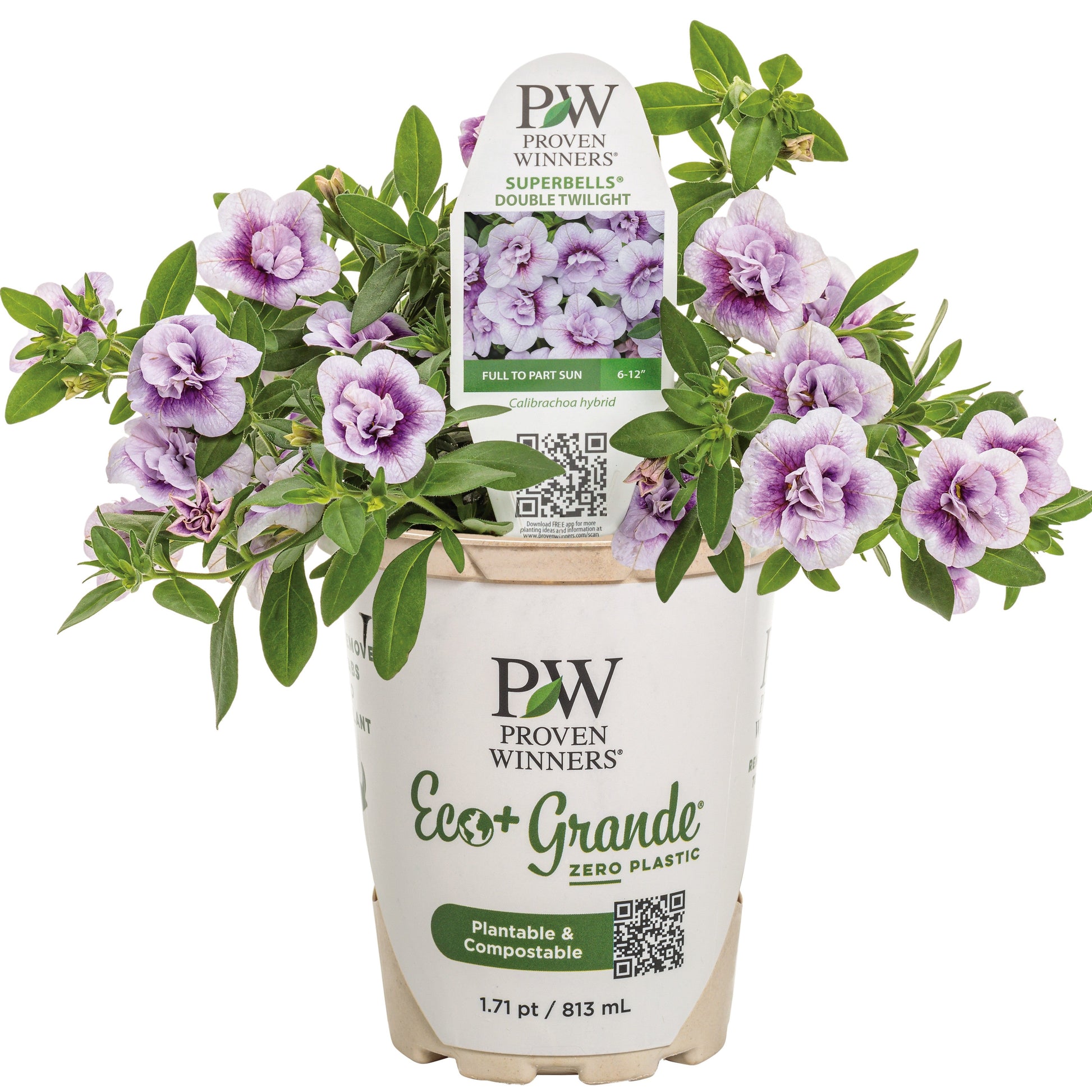 Make a statement in your garden with Superbells® Double Twilight! This stunning variety features small, silvery-lavender flowers with a striking dark purple center, creating a bold and captivating display all season long. Abundant, rosebud-like blooms fill your garden consistently from planting until the first frost, adding texture and color to hanging baskets and containers. As part of the Superbells Double Calibrachoa line, Double Twilight is an eye-catching and impactful choice for any landscape. Heat-tolerant and low-maintenance, it requires no deadheading, making it perfect for effortless gardening. Enjoy vibrant, long-lasting beauty with this unique and elegant variety.