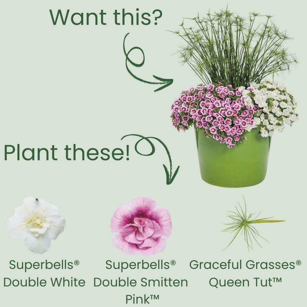 Gardeners have come to love the double rosebud-like blossoms of our Superbells® Double calibrachoa line since its inception. Now, we’re adding an essential color to the series with the fully double-flowered, prolifically blooming, bright white Superbells® Double White. We love how it adds a beautiful lacy texture to recipes. Mix and match it with every other color and its robust, well-branched habit will help to fill out your hanging baskets, upright containers and window boxes fully. New growth quickly covers the spent flowers, so no deadheading is needed to keep this plant in color from spring into fall.
