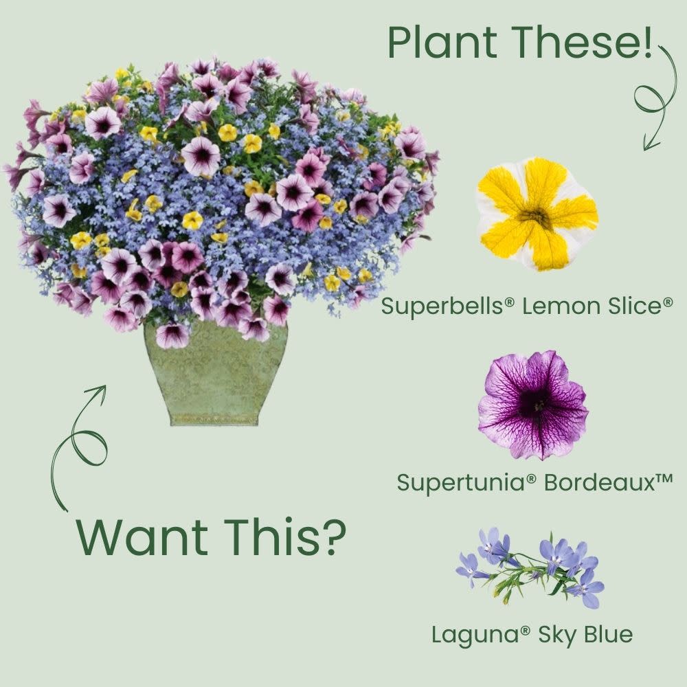 Brighten up your garden with Superbells® Lemon Slice®, a stunning variety that features a unique pinwheel pattern of cheerful yellow and white blooms. These petunia-like flowers cascade gracefully throughout the season, creating a vibrant display that doesn’t require deadheading. Perfect for hanging baskets, containers, or as ground cover, this low-maintenance beauty thrives with ease and attracts hummingbirds with its captivating color. Whether in the garden or on your patio, Superbells® Lemon Slice® delivers continuous color and charm with minimal effort.