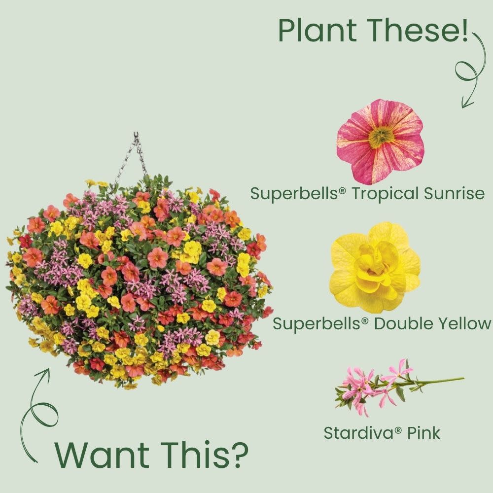 Transform your garden with the vibrant beauty of Superbells® Tropical Sunrise! This stunning variety features a lively mix of yellow and pinkish-red streaks that bloom abundantly all season long. From planting until the first frost, these small, petunia-like flowers create a striking display of color. Heat-tolerant and low-maintenance, Superbells® Tropical Sunrise® requires no deadheading, making it perfect for busy gardeners. Its dazzling blooms also attract hummingbirds, adding a touch of nature’s magic to your outdoor space. Ideal for hanging baskets and containers, this sun-loving beauty will thrive in your landscape, bringing non-stop color with minimal effort.