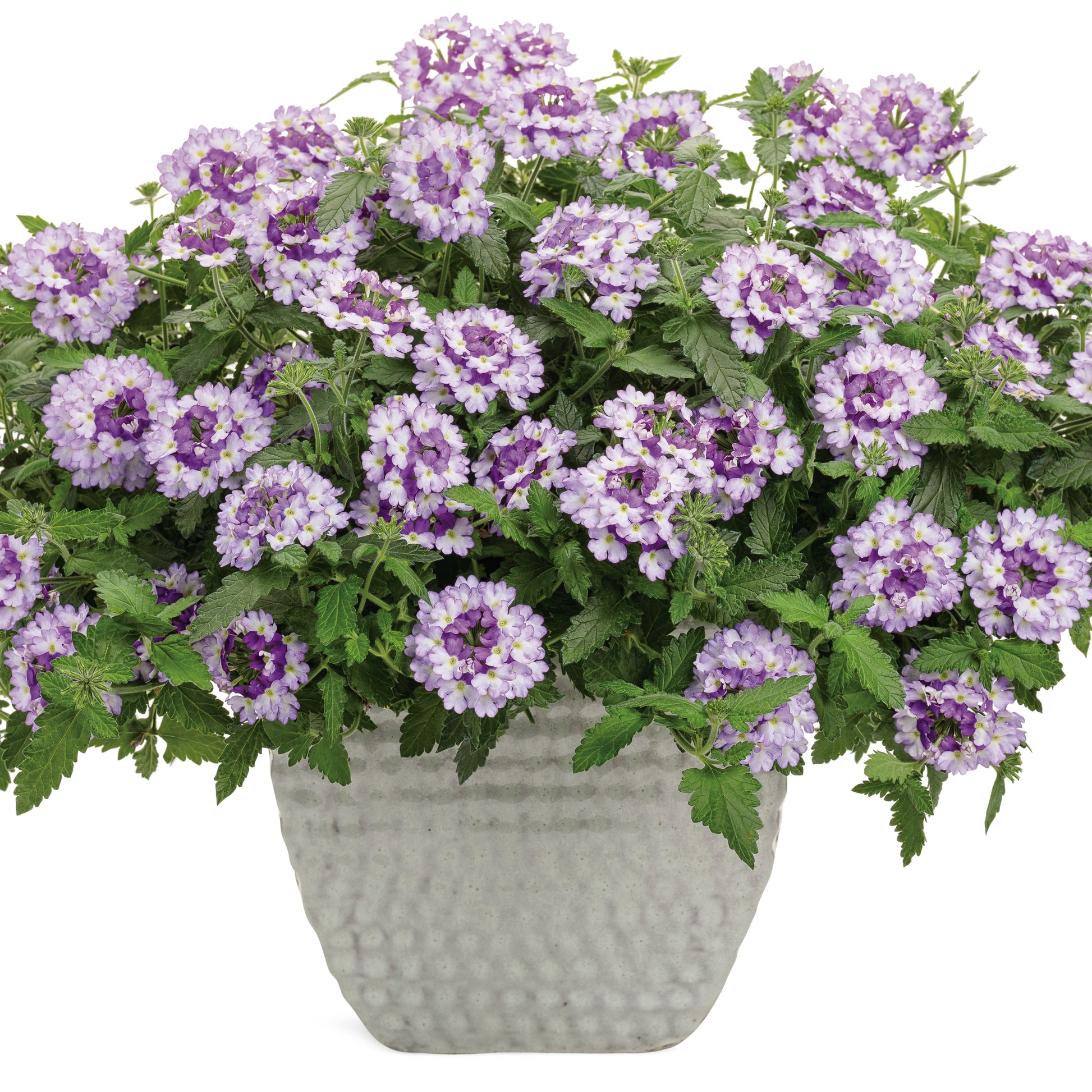 Superbena Sparkling Amethyst displays vigorous, lilac and white flowers all season. With a mounding-trailing habit, they function as both spillers and fillers in combination planters and are best planted at the front of landscape beds. They are heat tolerant and attract butterflies.
