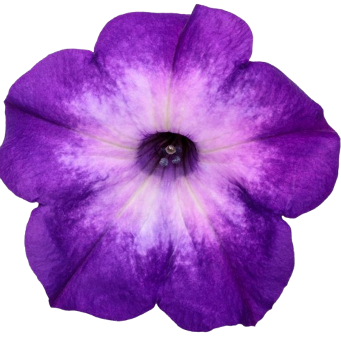 Supertunia® Tiara Blue has beautiful deep purple/blue flowers with a light purple center that are vigorous with slightly mounded habits that function as both fillers and spillers in containers. They are also excellent landscape plants, best suited to be placed near the front of beds. This award winner is heat and drought tolerant, attracts pollinators, and does not need to be deadheaded.