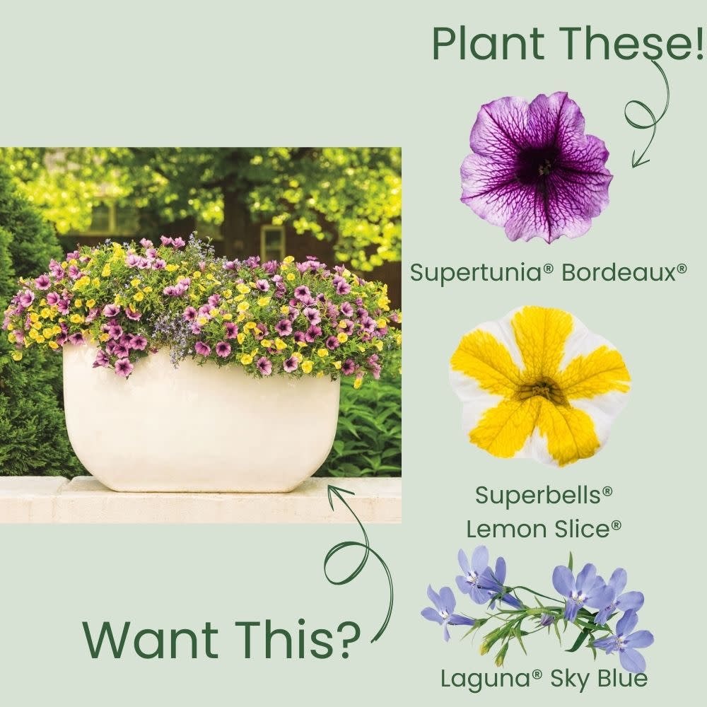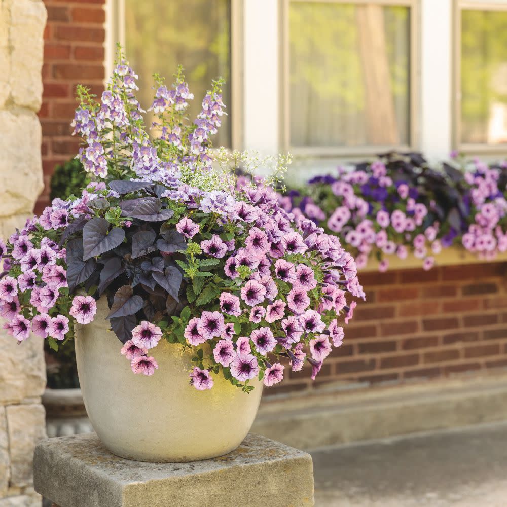 Supertunia® Bordeaux™ has beautiful light purple flowers with deep purple veins. Supertunia petunias are vigorous with slightly mounded habits that function as both fillers and spillers in containers. They are also excellent landscape plants, best suited to be placed near the front of beds. This award winner is heat and drought tolerant, attracts pollinators, and does not need to be deadheaded.