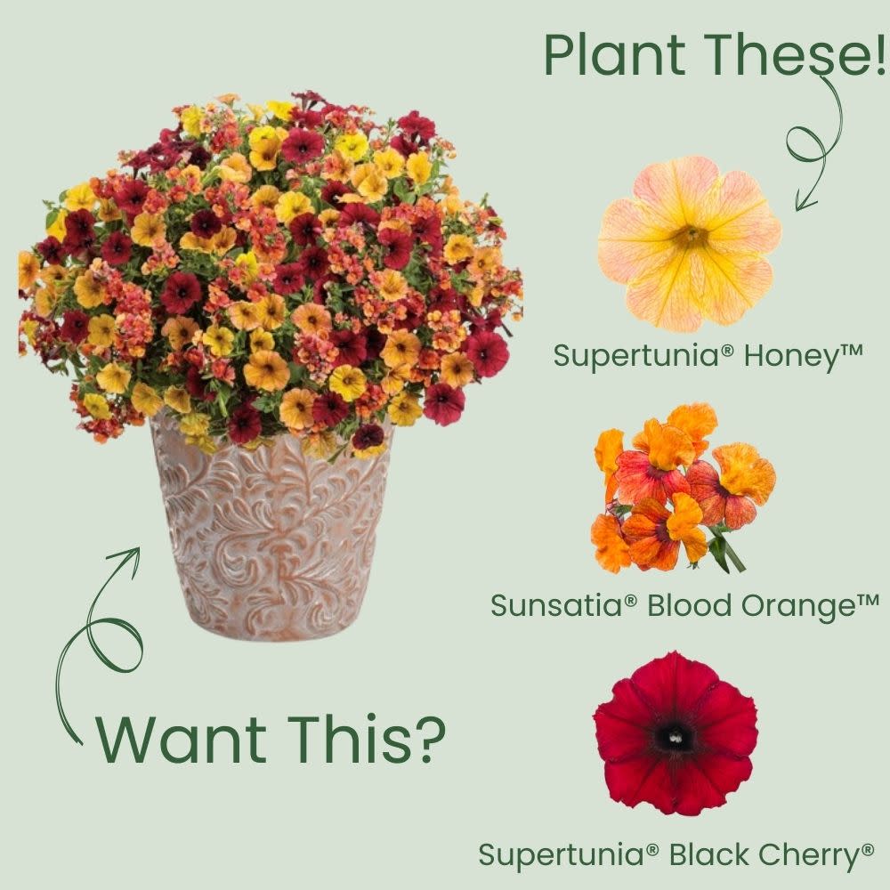 Supertunia® Honey™ is a charming variety featuring a soft mix of yellow and pink blooms that add a gentle, pastel touch to any garden. Known for its vigorous growth and slightly mounded habit, Supertunias work beautifully as both fillers and spillers in containers, creating a lush, cascading effect. They are also excellent landscape plants, especially when placed near the front of beds, where their delicate hues can brighten the garden. This award-winning variety is heat and drought-tolerant, attracts pollinators, and doesn’t require deadheading, making it a low-maintenance yet stunning addition to your outdoor space.