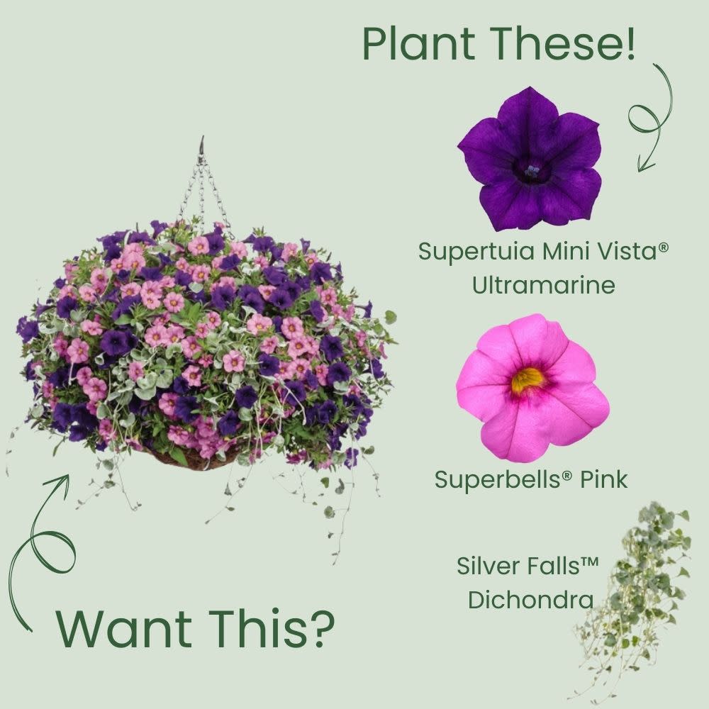 Compared to Supertunia® Royal Velvet, Supertunia Mini Vista Ultramarine is the same shade of royal purple, but its blooms are smaller and plentiful, covering the attractive, densely branched canopy. Supertunia Mini Vista petunias also work well in landscapes, especially in tighter spaces such as bordering walkways, where they grow vigorously to form a colorful edging without overrunning the sidewalk.