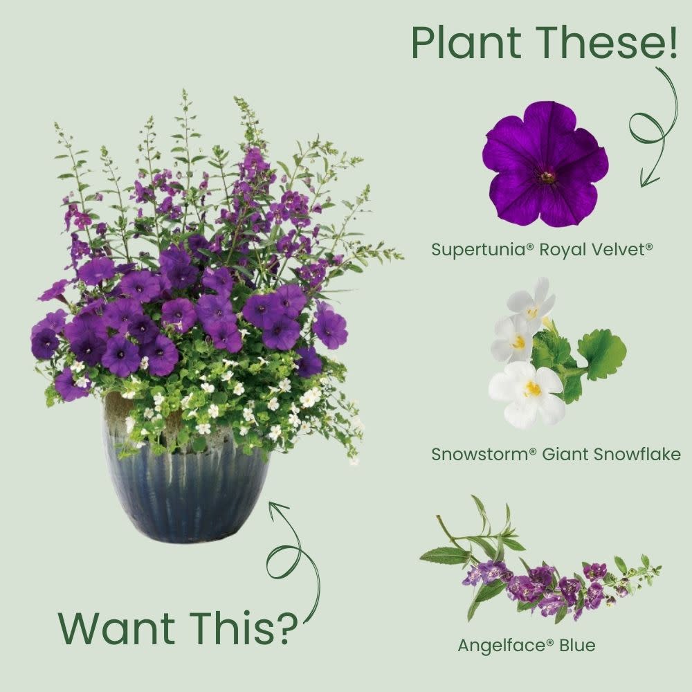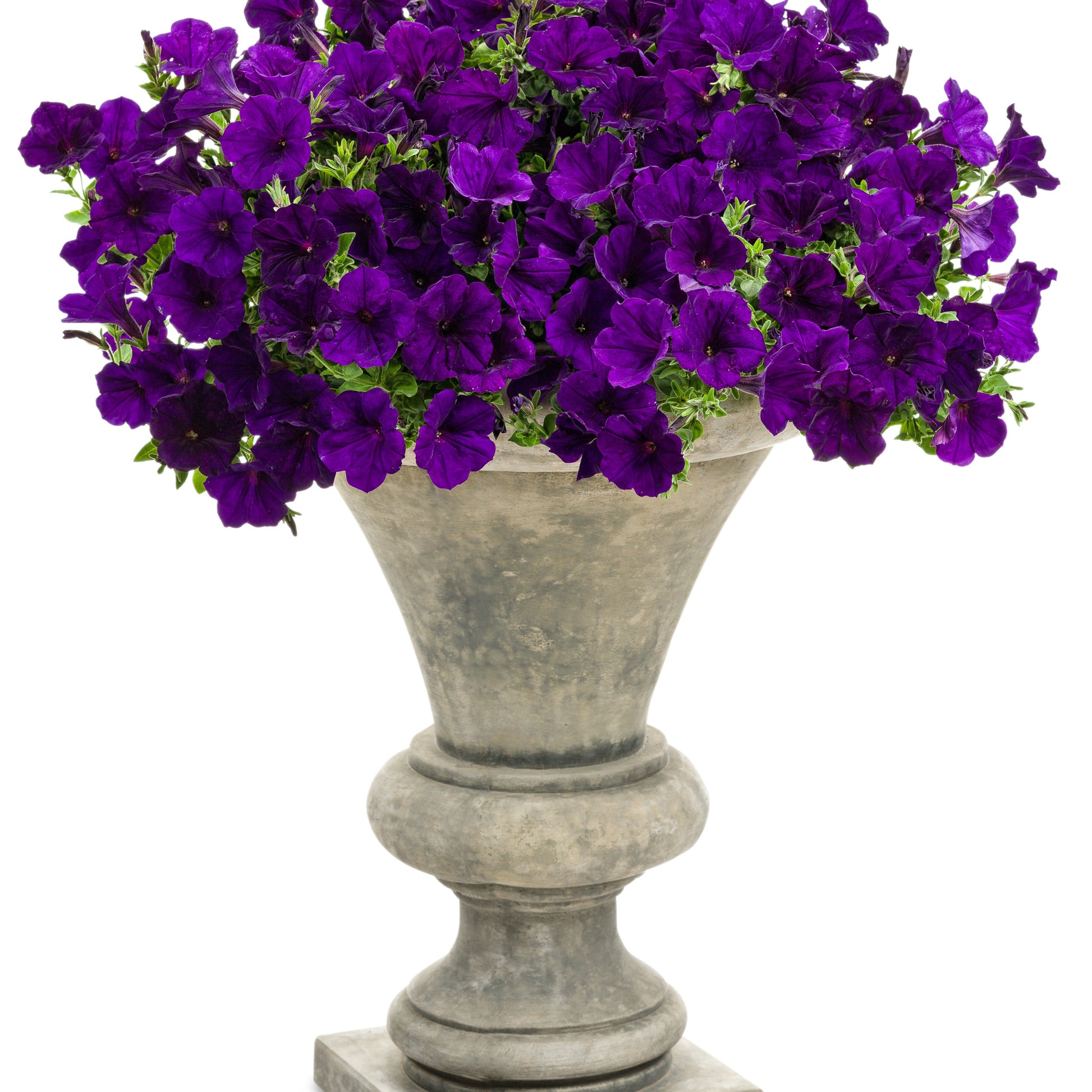 Supertunia® Royal Velvet® has deep purple flowers that bloom all season. Supertunia petunias are vigorous with slightly mounded habits that function as both fillers and spillers in containers. They are also excellent landscape plants, best suited to be placed near the front of beds. This award winner is heat and drought tolerant, attracts pollinators and does not need to be deadheaded.
