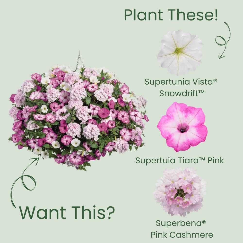 Supertunia Vista® Snowdrift™ features stunning, pure white flowers that bloom from spring to frost, providing continuous color throughout the season. With its vigorous growth and mounding, trailing habit, this petunia is an ideal choice for both landscape beds and large containers. It works beautifully in the front or middle of garden beds and functions as both a filler and spiller in containers, creating a lush, cascading display. Attracting pollinators and requiring no deadheading, Supertunia Vista® Snowdrift™ is a low-maintenance beauty that brings effortless elegance to your outdoor space.