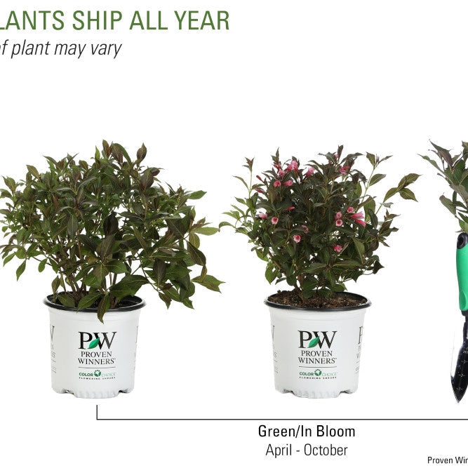 Wine & Roses® Weigela displays rosy pink flowers in late spring and will rebloom in summer on rich dark purple foliage that provides a high impact backdrop throughout the season in any garden. This weigela resists deer and attracts hummingbirds and butterflies with it's trumpet-like flowers. It's also fast growing and low maintenance, making it an easy choice for season-long color.