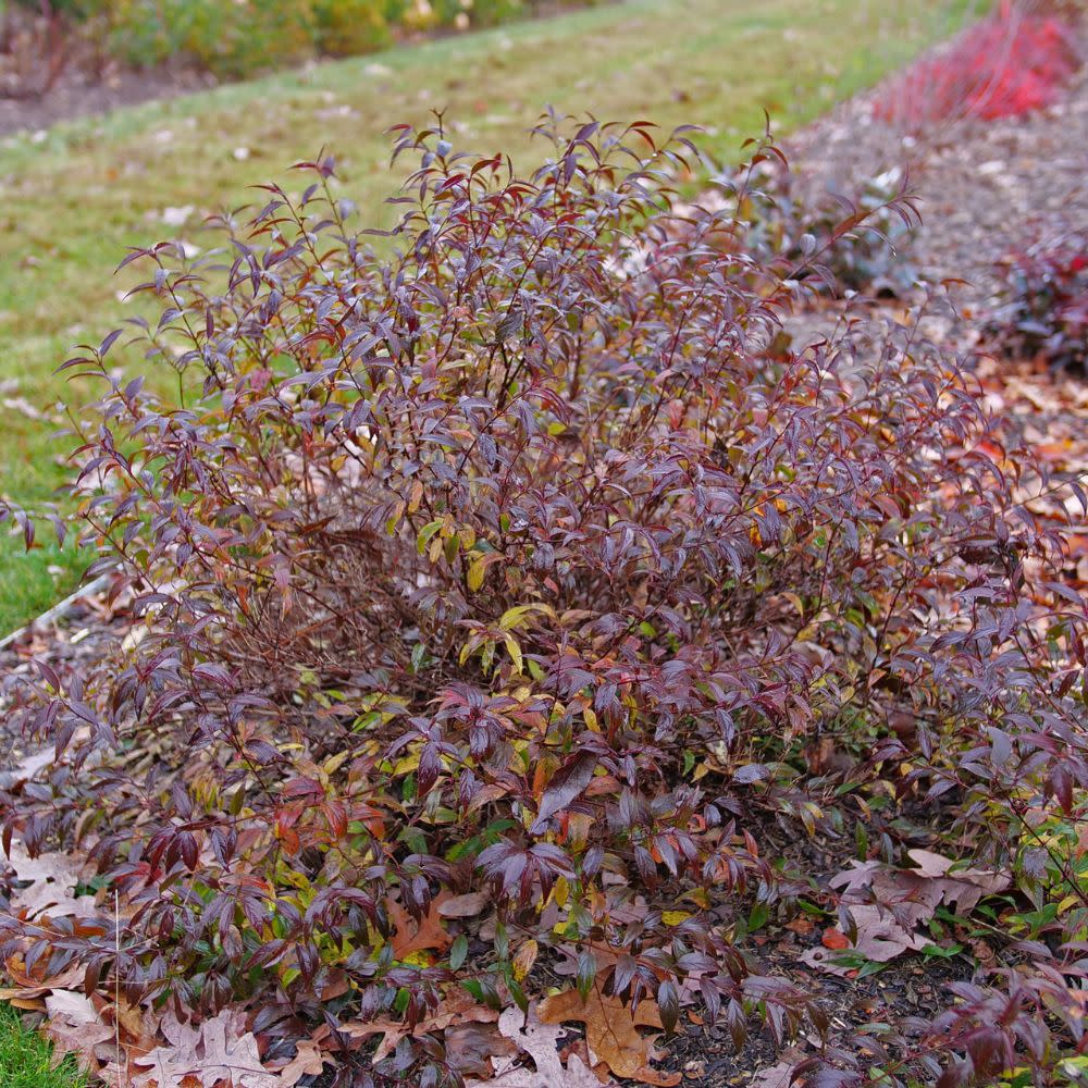 - Maintains tidy, medium green, foliage in spring and summer that shifts to burgundy red in the fall